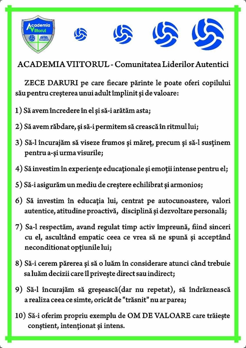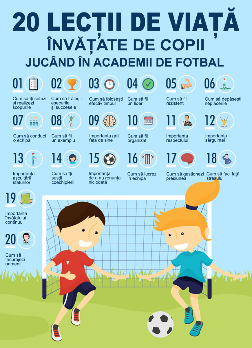 Prin sport copiii invața valori importante cum ar fi încrederea în sine și în cei apropiați, responsabilitatea, perseverența, ajutor reciproc, dedicația și altele.