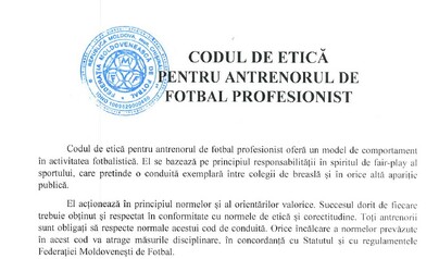 Codul de Etica a antrenorului oferă un model de conduită în activitatea fotbalistică. El se bazează pe principiul responsabilității în spiritul de fair-play al sportului, care pretinde o conduită exemplară între colegii de breaslă și în orice altă apariție publică.